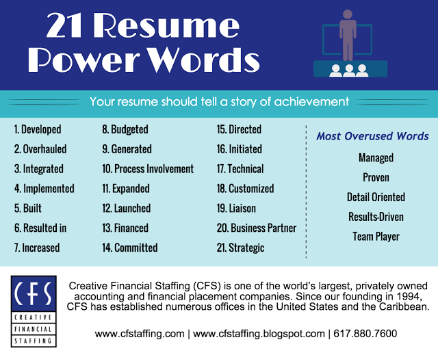 Power words to improve your resume Image posted on March 21, 2016March 21, 2016 by Dianedelgadolemaire Share this: Click to share on Pinterest (Opens in new window) Pinterest More Click to email a link to a friend (Opens in new window) Email Click to share on LinkedIn (Opens in new window) LinkedIn Click to share on X (Opens in new window) X Click to share on Facebook (Opens in new window) Facebook Like Loading...