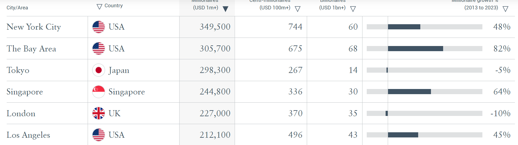 Where do most of the millionaires live? Posted on June 4, 2024 by Dianedelgadolemaire Check this out: https://www.henleyglobal.com/publications/wealthiest-cities-2024? Share this: Click to share on Pinterest (Opens in new window) Pinterest More Click to email a link to a friend (Opens in new window) Email Click to share on LinkedIn (Opens in new window) LinkedIn Click to share on X (Opens in new window) X Click to share on Facebook (Opens in new window) Facebook Like Loading...